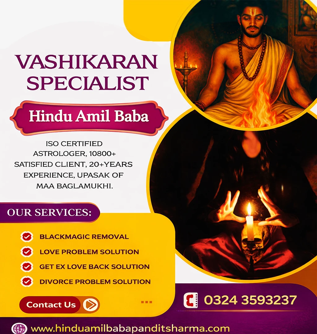 With years of expertise, Amil Baba Pandit Sharma specializes in Love Marriage Solutions, Black Magic Removal, Love Problem Solutions, Divorce Issue Resolutions, Enemy Elimination, Business Troubleshooting, Inter-caste Marriage Solutions, and much more. Whether you need help with Manpasand Shadi or resolving issues related to lost love, health, wealth, or fame, Amil Baba Pandit Sharma offers swift, guaranteed results within a limited time frame.